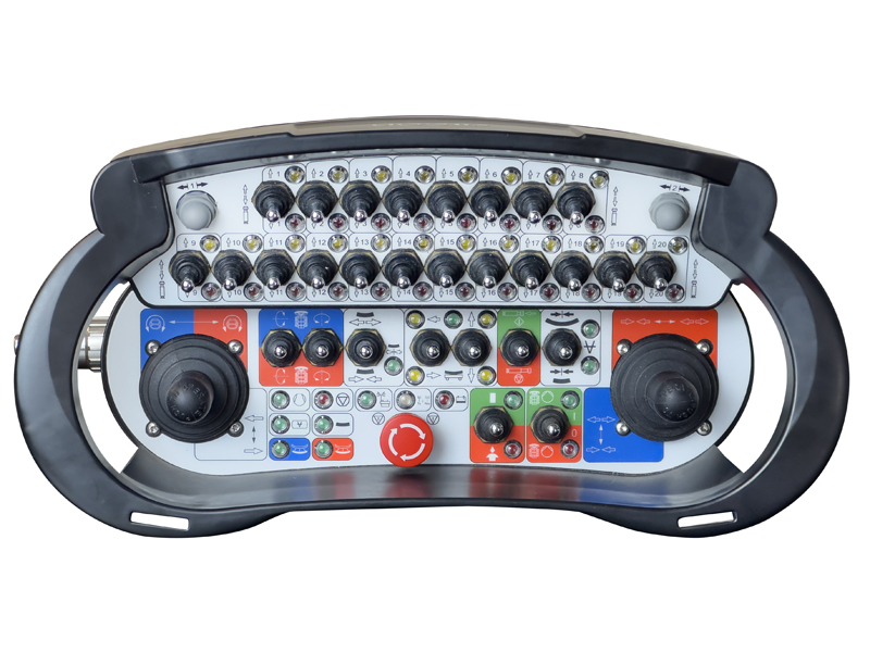 O transmissor T7 EX oferece o máximo de possibilidades para o posicionamento dos elementos de comando. A pedido do cliente, podem ser integrados indicadores LED ou mesmo um display gráfico. O transmissor a cabo incluindo fonte de alimentação é opcional, podendo elevar a disponibilidade do sistema ao nível máximo, garantindo operações contínua mesmo em situações críticas.