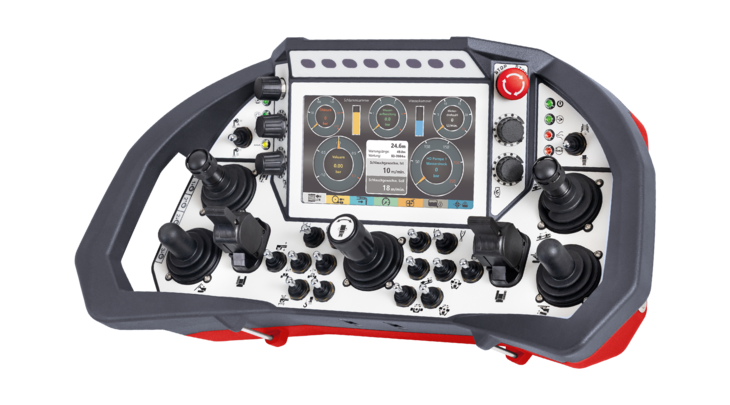 O T9 é o maior transmissor de joystick da série T e oferece espaço amplo para a disposição de todos os elementos de comando. Pode ser equipado com uma variedade de joysticks e alavancas lineares (paddles). Além disso, os clientes têm a possibilidade de escolher entre quatro diferentes displays gráficos a cores. O maior display possui uma resolução de 800 x 480 pixeis (7,0“) e como todos os displays gráficos a cores da ARCON, pode ser programado através do ambiente de desenvolvimento Qt.